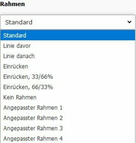 Zusätzlich zu den bereits verfügbaren Rahmen sind vier "Angepasste Rahmen" verfügbar.